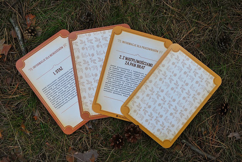 Gracze wcielają się w role Pracownika i Menedżera. Typy zachowań, które wspomniałam wyżej, potrzebne są podczas tworzenia profilu postaci, którego rolę odgrywa gracz będący Pracownikiem. Obie strony - zarówno Pracownik, jak i Menedżer, wcielając się w swoje role, mają za zadanie stawić czoła hipotetycznym sytuacjom opisanym na dużych kartach (każda akcja opisana jest analogicznie, w wersji dla jednej i drugiej strony - są to codzienne sytuacje, które mogą zdarzyć się w pracy i wymagają rzeczowych rozwiązań). W zależności od tego, jak sprostają zadaniu, otrzymują określoną ilość punktów (żetonów). Oczywiście ten, kto zbierze ich najwięcej, wygrywa.